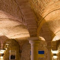 The cross vault in the Korfmann Winery, built in 1840, was turned into a wine tavern in 1999, which can accommodate up to 50 people. General information on Rheinhessen cow chapels .The origin of the typical Rheinhessen vaults goes back to the early 19th century. At that time, farmers wanted to increase the yield of their cattle by keeping them in stables and use the leftovers as fertiliser for their fields. Initially, the cattle were housed on the ground floor of the half-timbered houses, above which hay and straw were stored. However, this method often led to fires, which the farmers wanted to avoid at all costs. In addition, the wooden beams of the houses rotted particularly quickly due to heat and evaporation and diseases found a breeding ground. In the course of secularisation, during which, among other things, church properties were nationalised, farm animals moved into cross-vaulted cellars for the first time. Light brick was easy to work with and did not rot, and it was also fireproof and more hygienic. Another reason for this construction method is the well-tried statics, which made it possible to roof even larger rooms without collapsing, thus creating space for more livestock. Since this construction method was previously only known from churches and monasteries and had a sacred character, a new name was quickly found: The Cow Chapel! Until the end of the 19th century, this type of construction became a status symbol in Rheinhessen, before cast-iron bars replaced the vault.