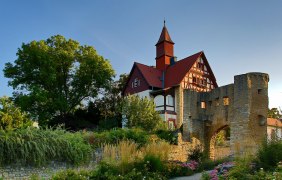 This old power plant is a proof of the economical prosperity of Ober-Ingelheim in the early 20th century. Until 1945 two Diesel engines with a total of 100 HP (horsepower) powered the DC –generators. As early as 1914 it was necessary to get additional power supply from Mainz. After the city of Ingelheim was founded in 1939, the power was changed from DC to AC.