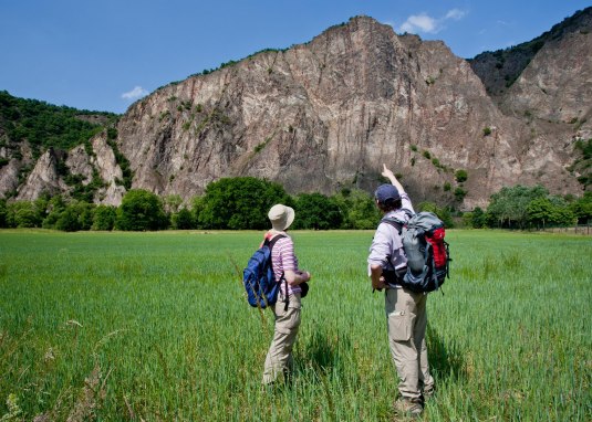 The Rotenfels is a nature reserve and home to a variety of rare plants and animals found only here in the region. It is also an ideal place for hiking enthusiasts. One of many hiking trails leads directly along the entire rim of the rock massif. The Rotenfels lies on the left bank of the Nahe River between the villages Norheim and Bad Münster am Stein-Ebernburg.