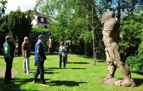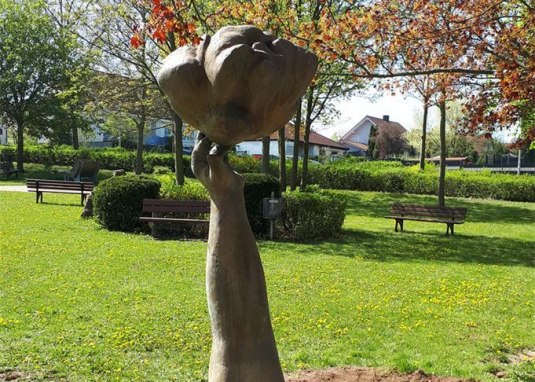 The sculpture "The Cloud" (1968/69 bronze) by Eberhard Linke here at the starting point of the Hiwweltour Aulheimer Tal is a reference to the sculpture collection of the Eberhard und Barbara Linke Foundation, which can be visited from May to October, Saturdays 2 to 6 pm - admission free. Three minutes on foot, Erbes-Büdesheimer Straße 7