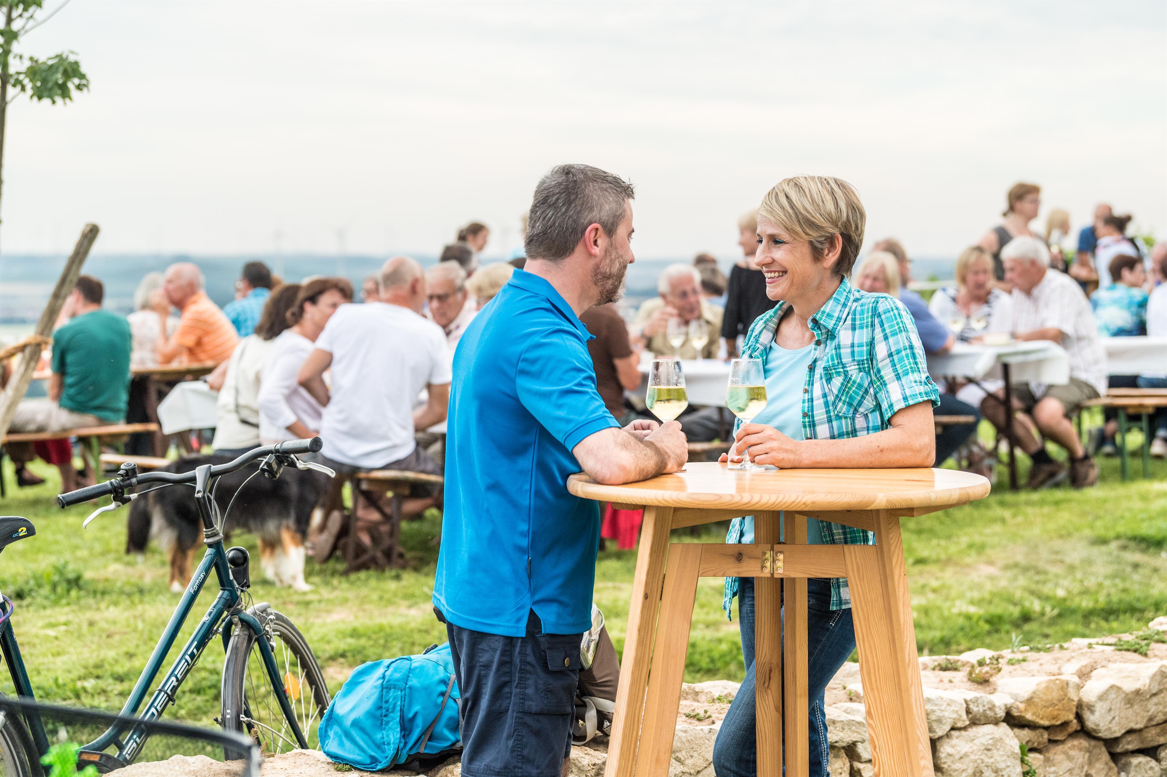 The member winemakers of "WeinErlebnis Zornheimer Berg" invite all wine lovers, Hiwweltour hikers, and walkers to the wine pavilion at Ruhkreuz. We want you to enjoy the wine pavilion in its purest form.
