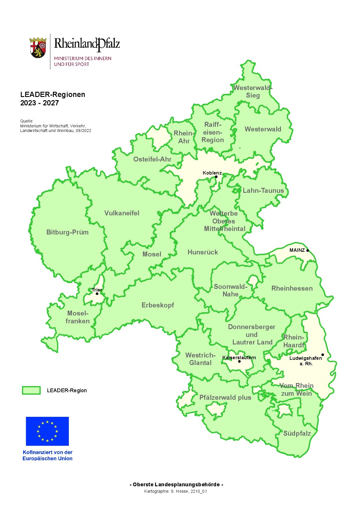 Documents at a glance: Local Integrated Rural Development Strategy (LILE) Rules of Procedure of the LAG Rheinhessen Information about LEADER funding Map LEADER regions in Germany EU flag LEADER logo Rhineland-Palatinate emblem