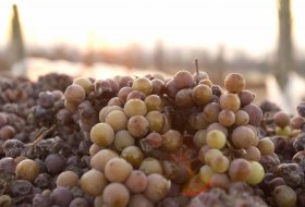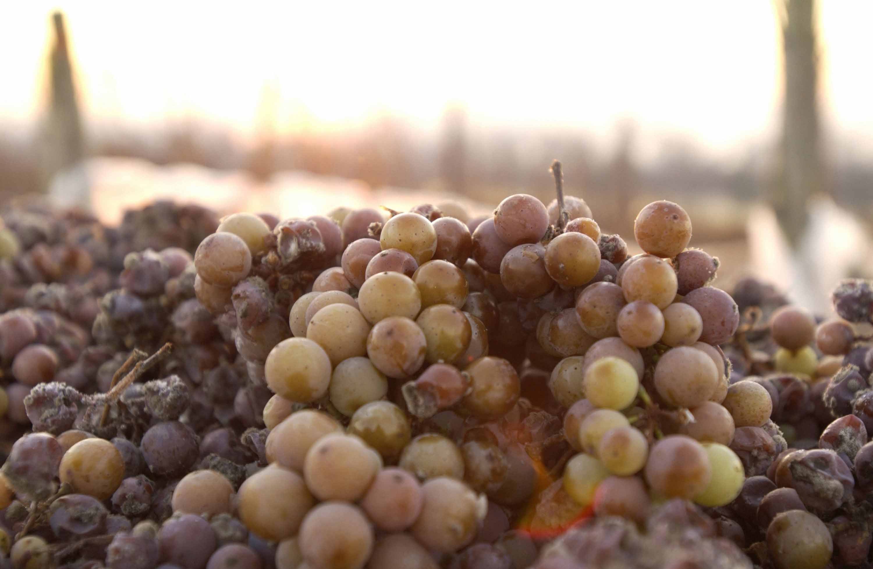 High quality dessert wine. The grapes must be frozen during harvesting and pressing (at least -7 ° Celsius). The water released from the berry cells freezes, the berry juice is concentrated, thereby increasing the must weight (an ice wine from Rheinhessen must have at least 120 ° Oechsle ). High-risk extraction (lower yield, risk of loss, with premature thawing unwanted "Frost taste"), therefore high-priced rarity.