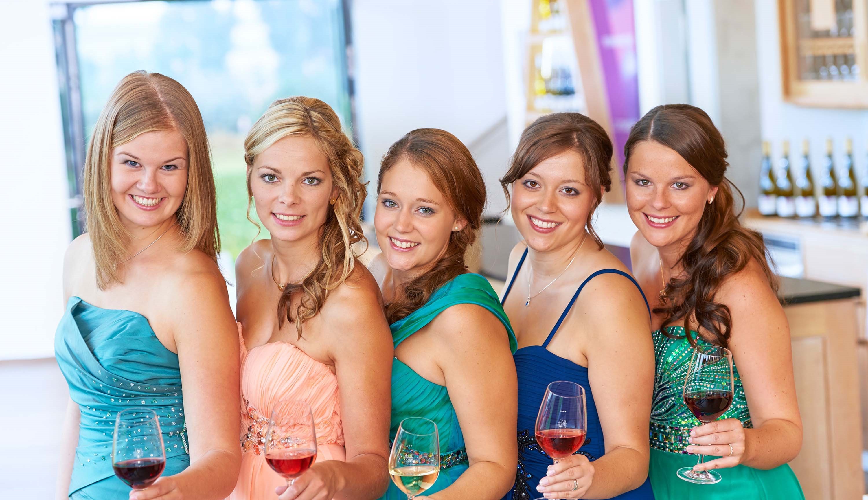Rheinhessen wine queen 2015 - 2016 with her princesses Laura, Patricia, Lisa and Kathrin