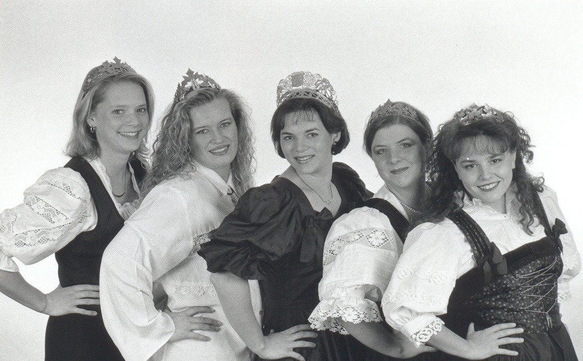 Rheinhessen wine queen 1997 - 1998 and German wine queen 1998 - 1999 with her wine princesses Carmen, Esther, Heike and Simone