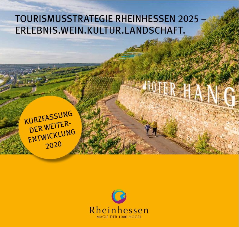 The existing wine tourism master plan from 2005 was updated as part of an externally moderated consultation and monitoring process. This reorientation "Tourism Strategy Rheinhessen 2025" defines for Rheinhessen the key strategic areas, goals and very specific lead projects. The guard rails for a sustainable, dynamic wine tourist development in terms of day and overnight guests, increase in value, improve the image and increase the awareness of the wine and tourism region are set.