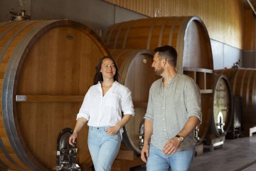 Women were once in charge here: the site was first mentioned in a document in 1290 with the name "an frauwenhalten". Originally, the hill was owned by a nunnery. Riesling and Pinot Noir vines grow on loess and limestone. Benches and a table at the "Fräulein von Flersheim" trullo can be used for a rest. In summer, roses bloom lushly there. The red vineyard hut at the Goldbergbrunnen is partly catered for.