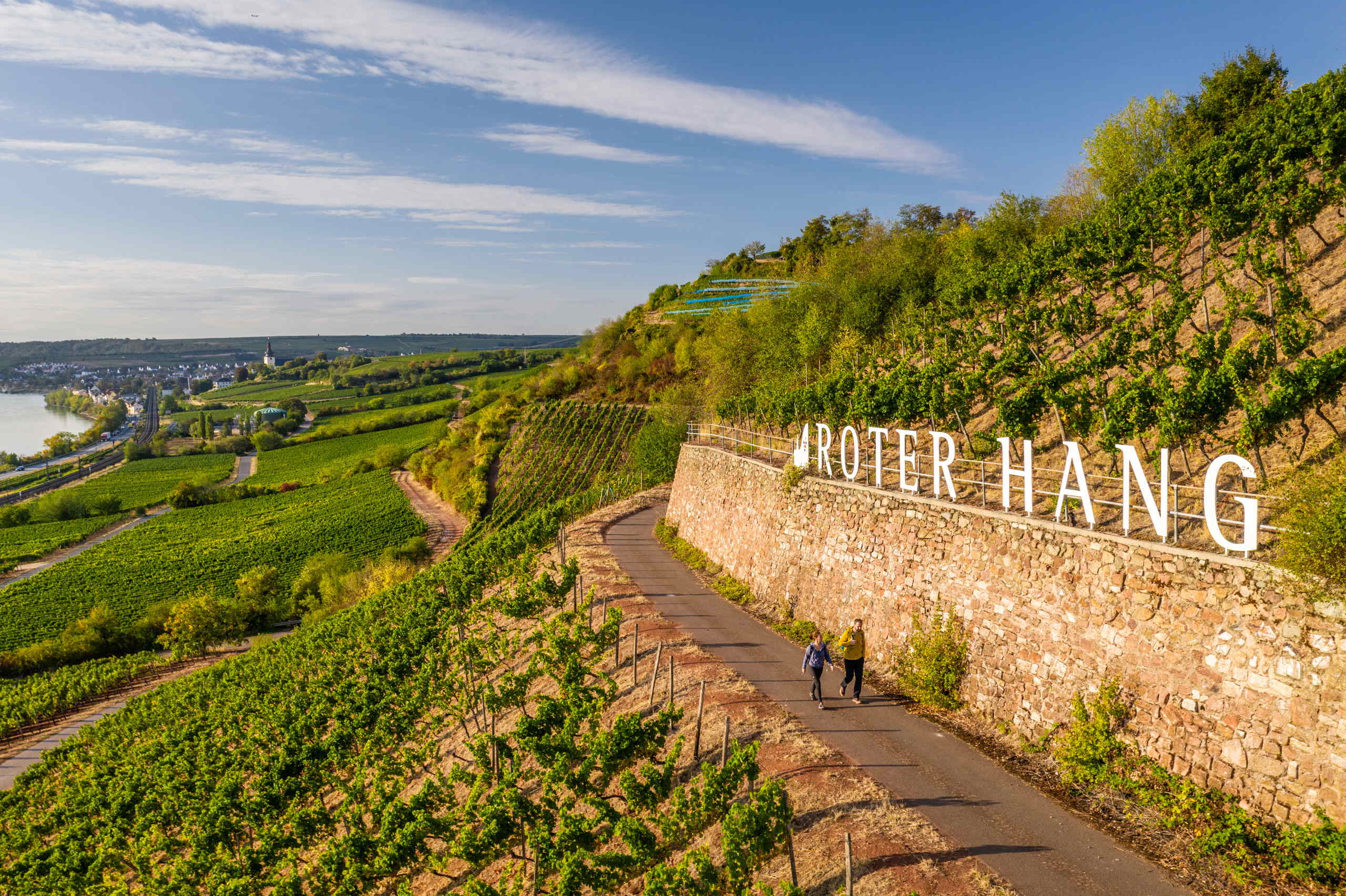 Wandere auf dem wunderschönen RheinTerrassenWeg und erleben den atemberaubenden Ausblick des Roten Hangs. Zwischen Rhein und Reben erlebst Du die schönsten Seiten Rheinhessens. Auch der Genuss kommt nicht zu kurz - auf den Wegen des größten Weinbaugebiets Deutschlands und der Weinstadt Nierstein wird Deine Reise von Wein und dessen Geschichte begleitet.