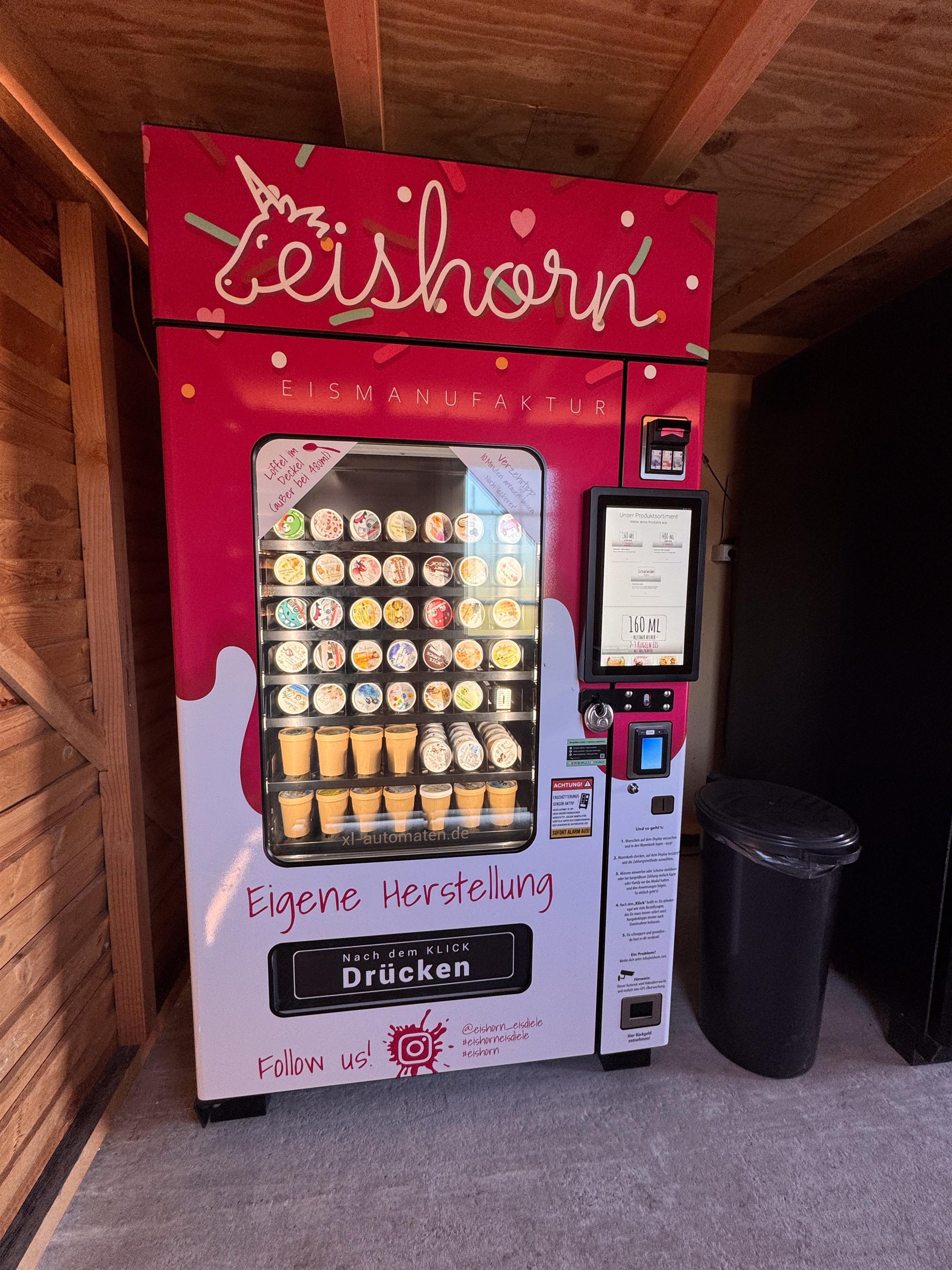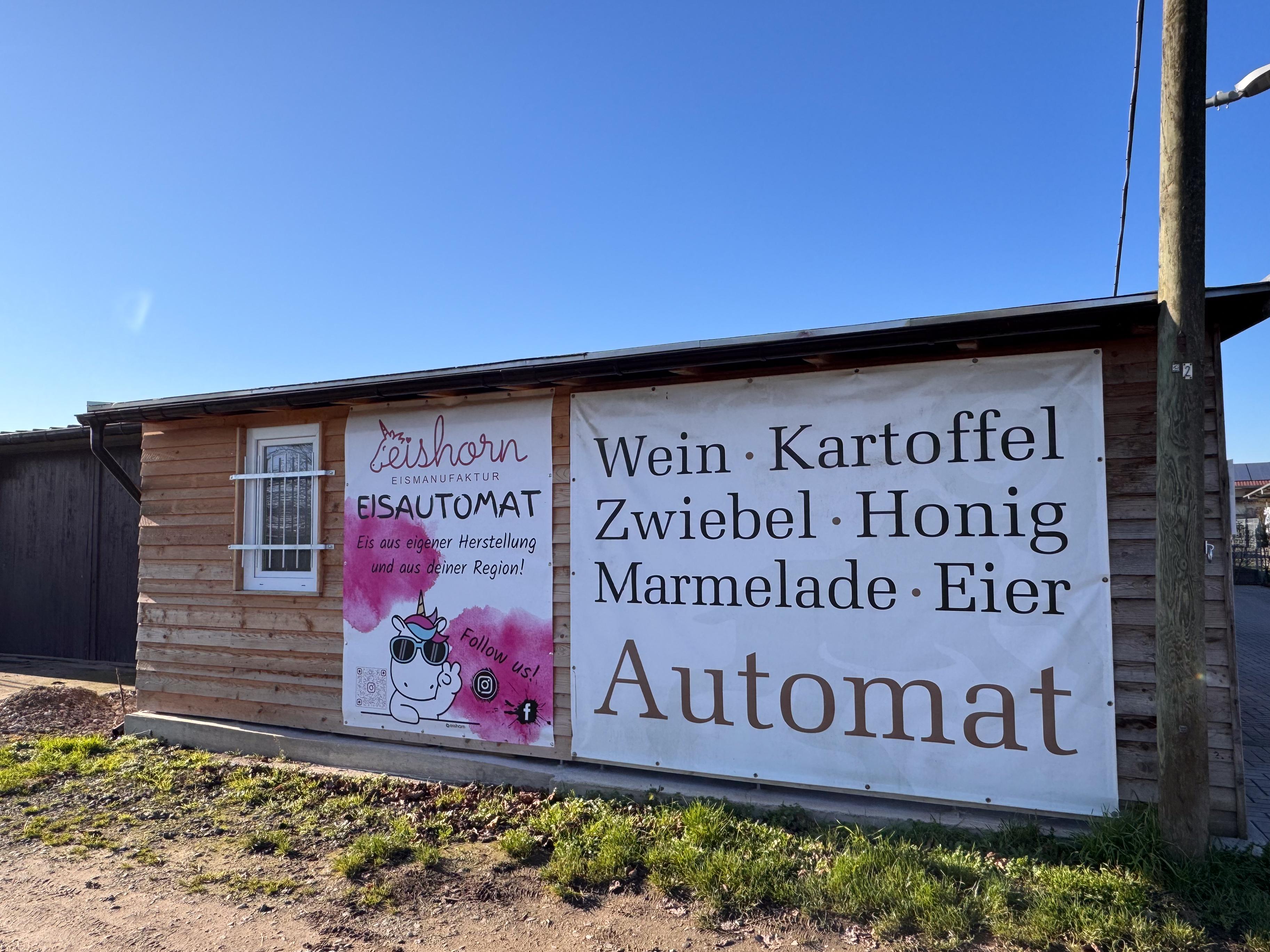 Direkt am Weingut Hartmann in Worms-Herrnsheim befindet sich der Eishornautomat mit vielen leckeren Sorten, wie z.B. Pflaume-Zimt, Glühwein, Zitrone Buttermilch, Spekulatius, Apfelmus, Dark Chocolat, Mohn-Marzipan oder Eishornwatte und vielen mehr, gewählt werden.