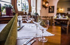 In unserem geräumigen, elegant eingerichteten Restaurant, das von einem Kronleuchter erhellt wird, empfangen wir Sie gerne. Am Abend erwartet Sie eine gut bürgerliche, deutsche Küche mit mediterranen Einflüssen. Da wir wert auf frische und saisonale Speisen legen, wechselt unsere Menükarte in regelmäßigen Abständen. Vegetarier kommen bei uns ebenso gut auf ihre Kosten wie Fleisch- und Fischliebhaber. Sollten Sie einen ebenerdigen Zugang zum Restaurant oder Garten benötigen, lassen Sie es uns wissen, wir helfen Ihnen gerne weiter!