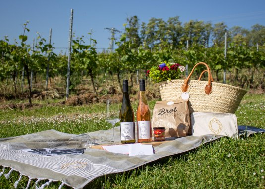 Bei dem JUWEL Weinpicknick könnt ihr unsere Weine dort genießen, wo sie entstehen. Erkundet die Umgebung unserer Heimat. Genießt den Blick über Rheinhessens Weinberge. Rastet an einem Picknick-Platz oder entlang der Wanderwege.
