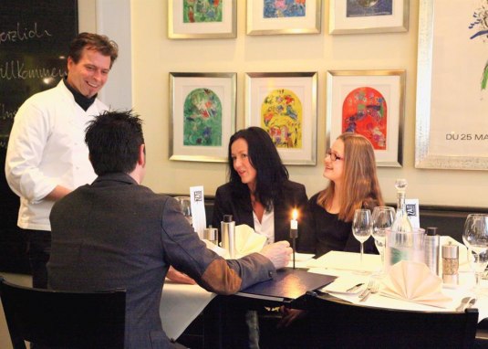 Die moderne Einrichtung mit Drucken von Chagall und die frische jahreszeitliche Küche mit Top-Produkten aus der Region und aller Welt heißen jeden Gast willkommen. Insgesamt über 300 Positionen befinden sich auf der Weinkarte, überwiegend