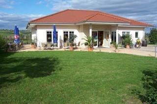 Ausblick in die rheinhessische Hügellandschaft. Die mediterrane Sonnenterrasse mit Spielwiese lädt zum Verweilen ein. In den Ferienwohnungen und den 2 Appartements kann man den Aufenthalt wunderbar verlängern.