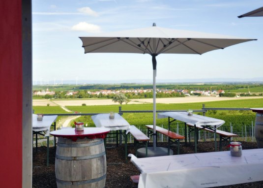 Das Wingertsheisje am Goldbergbrunnen wird zu bestimmten Zeiten und bei gutem Wetter vom Landrestaurat Tacheles und Ökol.Bio Weingut Schmitt aus Flörsheim-Dalsheim betrieben. Bitte beachten Sie hierzu die aktuellen Öffnungszeiten unter Wingertsheisje - Landrestaurant Tacheles (tacheles-landrestaurant.de)