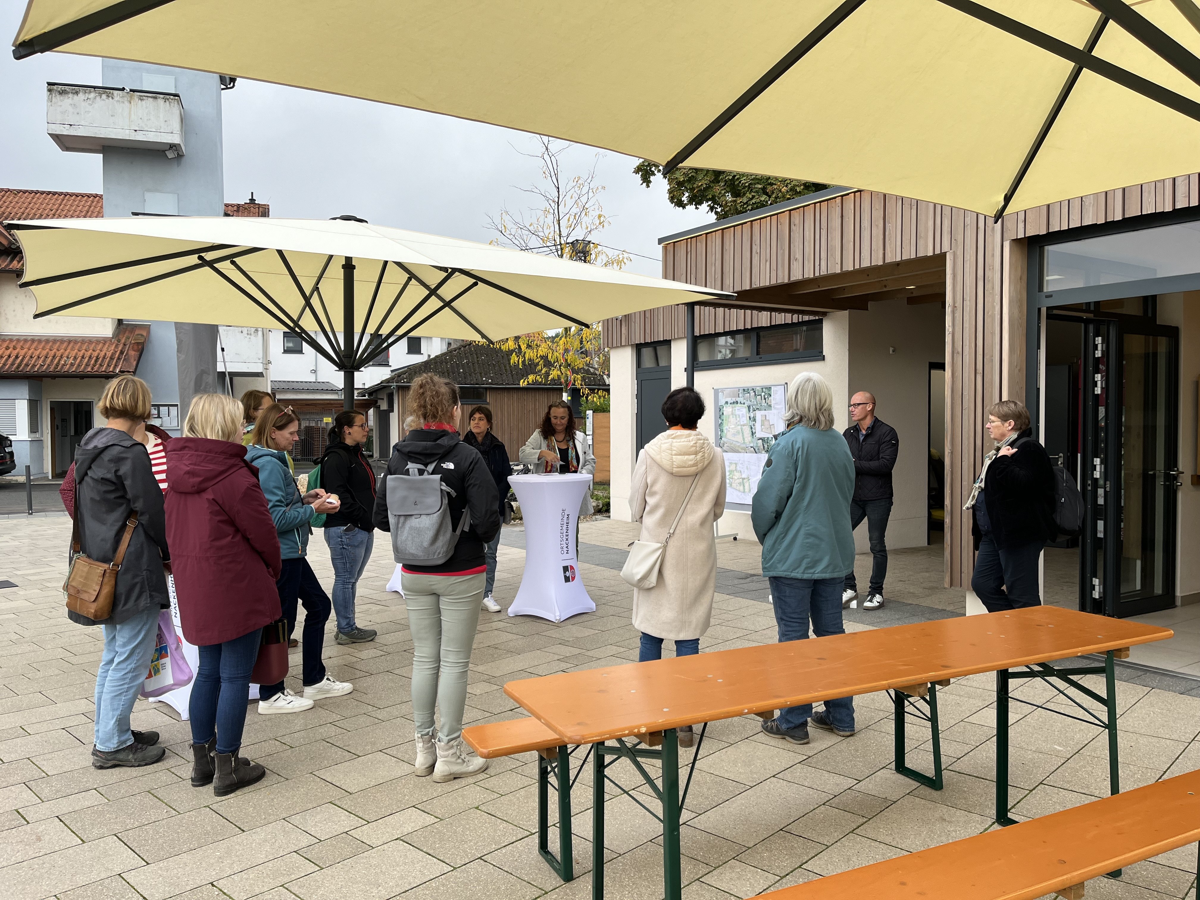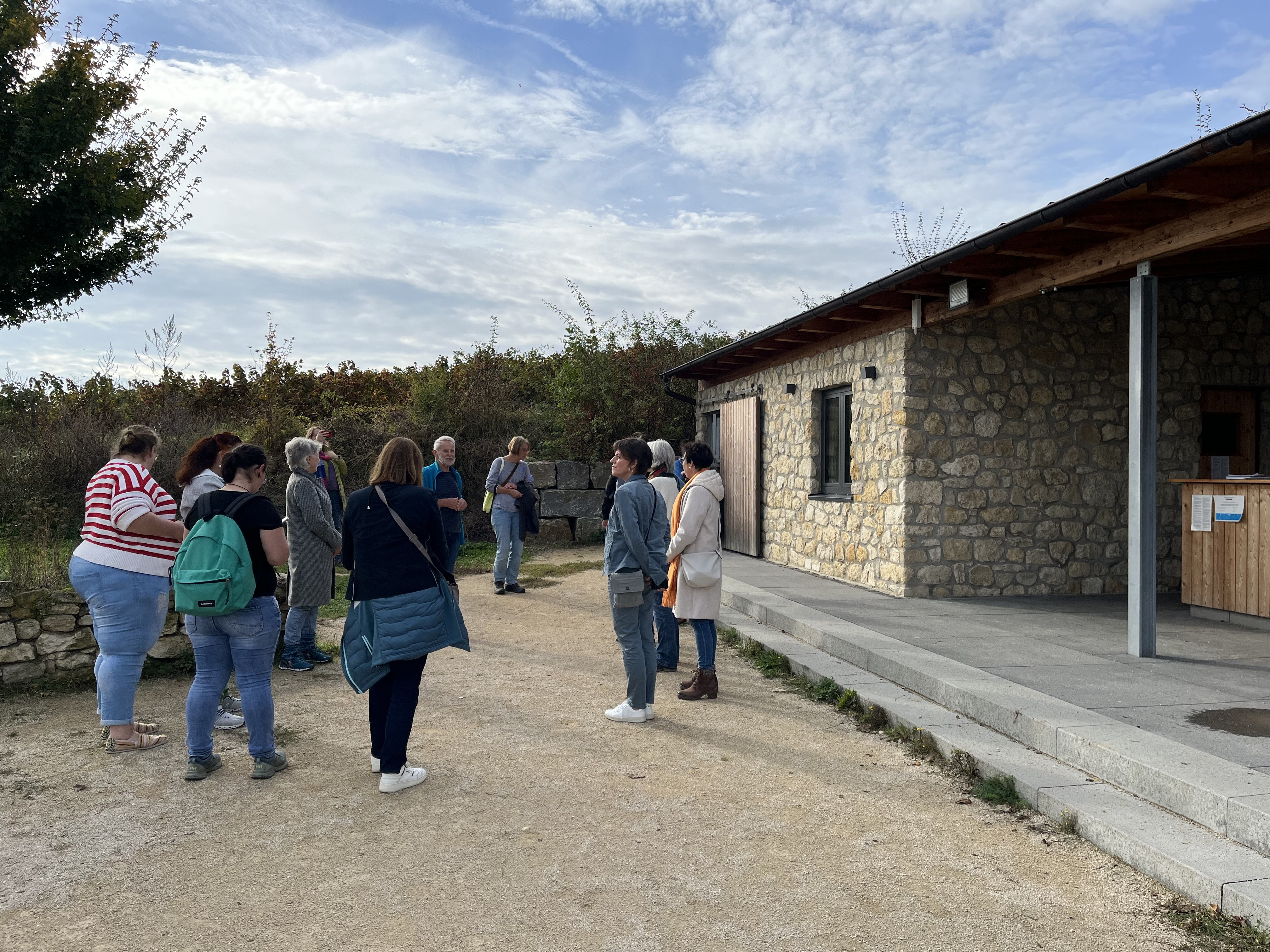 Regionalmanagerin Magdalena Haag begrüßte die Gruppe in Nackenheim. Dort hielt sie einen Kurzvortrag zur LEADER-Region. Im Anschluss hieß der Bürgermeister der Ortsgemeinde Nackenheim die Teilnehmer willkommen und präsentierte den neu gestalteten Marktplatz, der aus Mittel der GAK-Förderung aufgewertet wurde. Die nächste Projektbesichtigung fand in Zornheim statt. Dort begrüßten der ehemalige Bürgermeister sowie die ehemalige Beigeordnete der Ortsgemeinde die Teilnehmer und stellten das LEADER-Vorhaben „Weinpavillon am Zornheimer Berg“ vor. Zum Abschluss des Exkursionstages wurde der „SCHAUsteinbruch“ in Flonheim besucht. Der Projektträger, Herr Diehl, berichtete vom Weg der Idee bis zur Fertigstellung.
