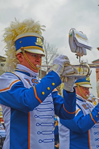 Trompeter der Rheingold Show and Brass Band beim Jugendmaskenzug 2020. Fastnacht in Mainz. Copyright: Maike Riedel, @ Maike Riedel