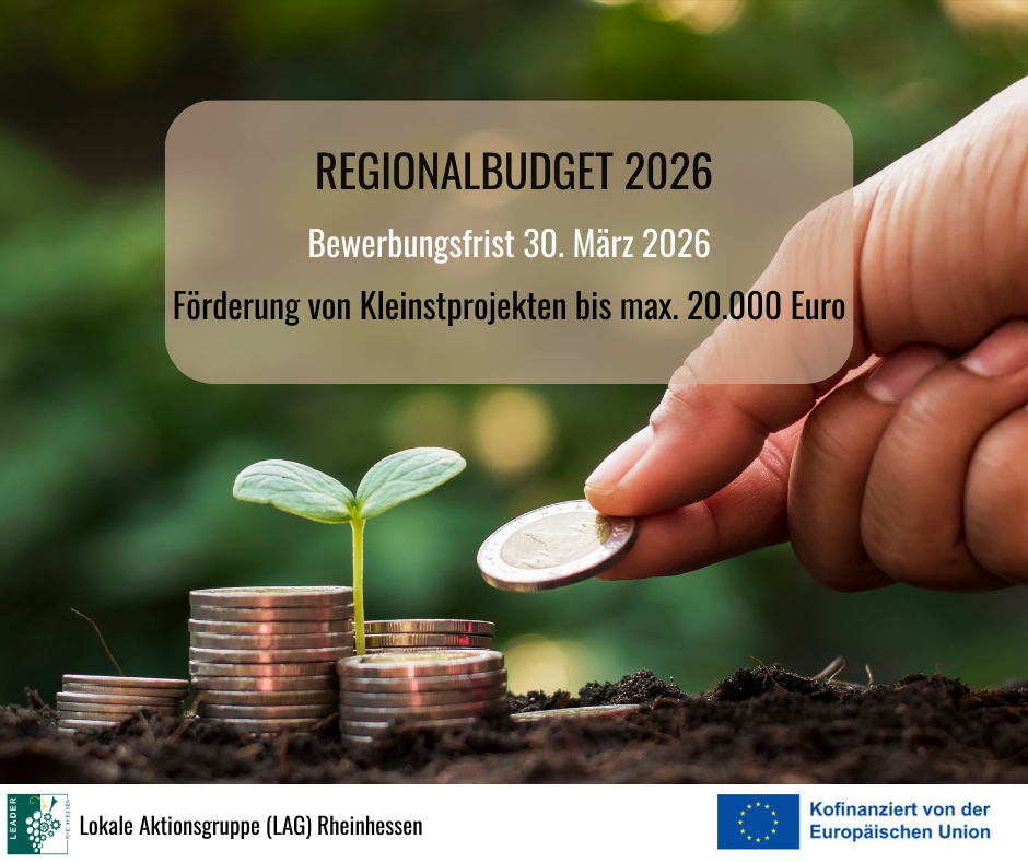 Erstmalig in der LEADER-Region Rheinhessen gibt es 2026 die Fördermöglichkeit von Kleinst-projekten im Förderaufruf „Regionalbudget“. >>Projektideen können bis 30. März 2026 eingereicht werden.