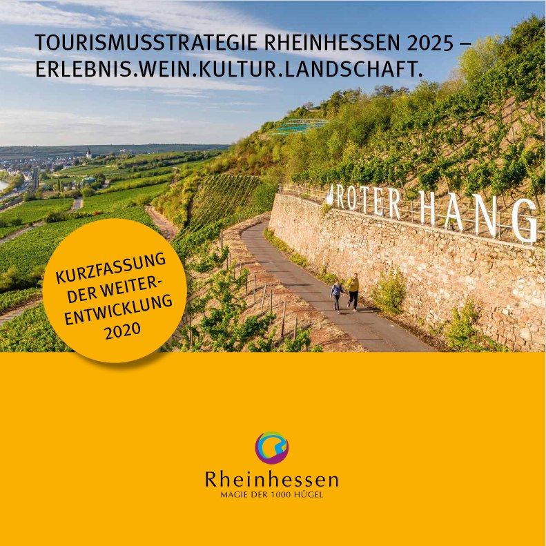 Der bestehende weintouristische Masterplan aus dem Jahr 2005 wurde im Rahmen eines extern moderierten Beratungs- und Begleitprozesses fortgeschrieben. Diese Neuausrichtung „Tourismusstrategie Rheinhessen 2025“ definiert für Rheinhessen die wesentlichen Strategiefelder, Ziele und sehr konkrete Leitprojekte. Die Leitplanken für eine nachhaltige, dynamische weintouristische Entwicklung in Sachen Tages- und Übernachtungsgäste, Erhöhung der Wertschöpfung, Verbesserung des Images und Steigerung des Bekanntheitsgrades der Wein- und Tourismusregion werden gesetzt.