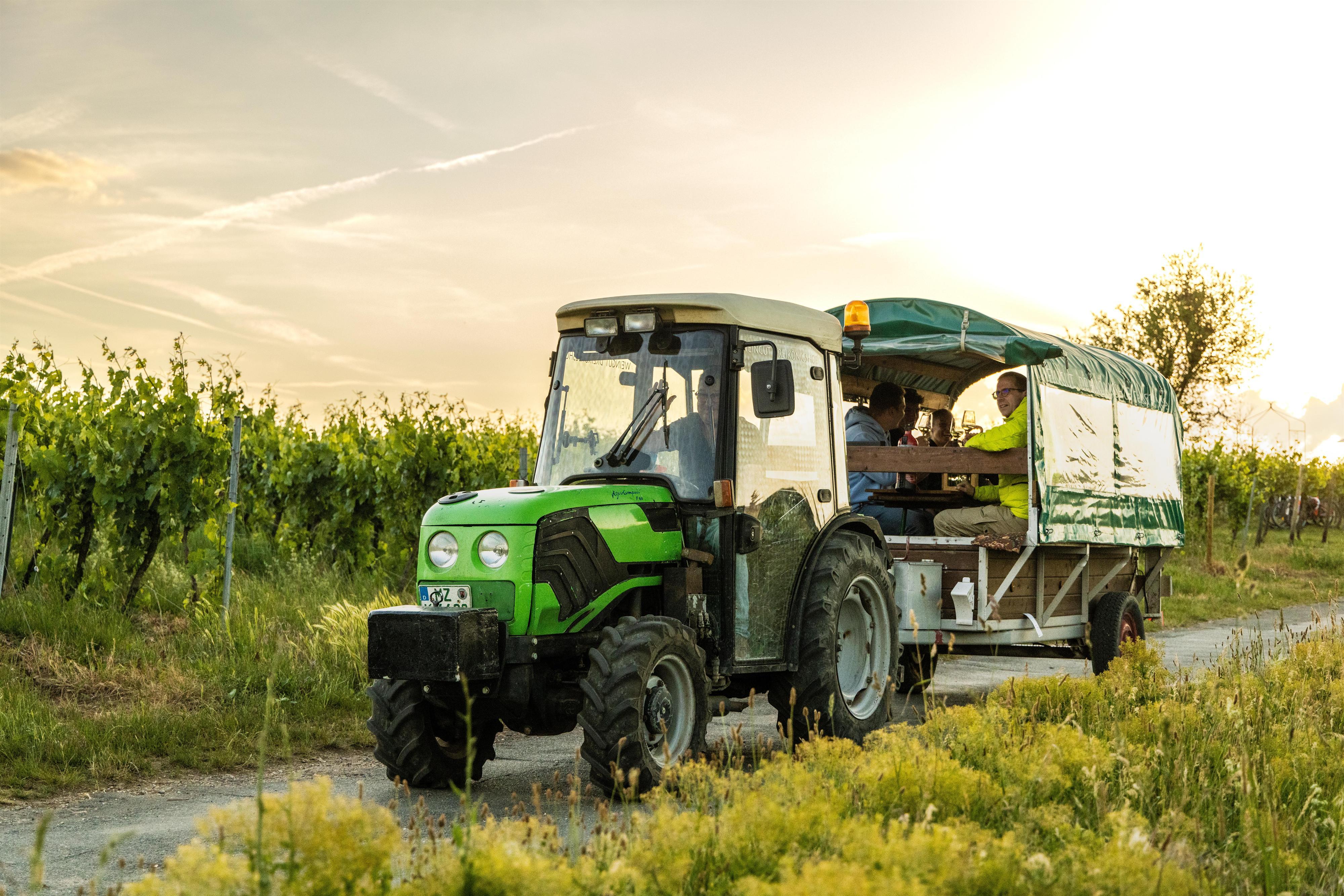 Während der Fahrt erhältst du einen Einblick in den Weinbau, insbesondere von PiWi-Sorten (Pilzwiderstandsfähig Sorten) und erfährst Wissenswertes über Dromersheim.