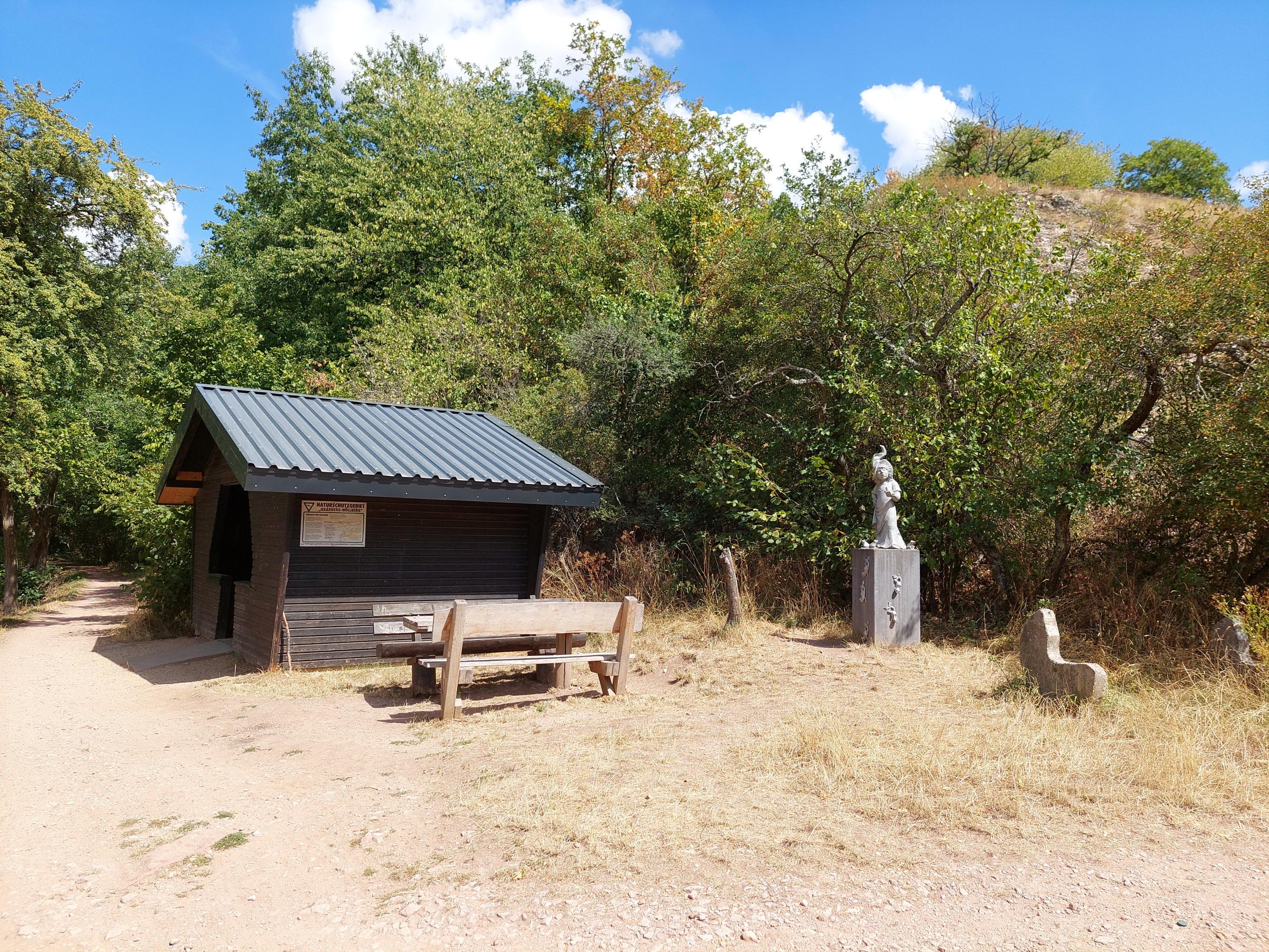 Die Schutzhütte mit zugehöriger Sitzgarnitur ist nicht nur ein schöner Rastplatz. An diesem Punkt treffen gleich mehrere Wander- und Spazierwege aufeinander. Hier kreuzen sich die Hiwweltouren Wasserturm und Heideblick, der Küstenweg Rheinhessen führt vorbei und gleichzeitig endet hier der Wöllsteiner Märchenweg.