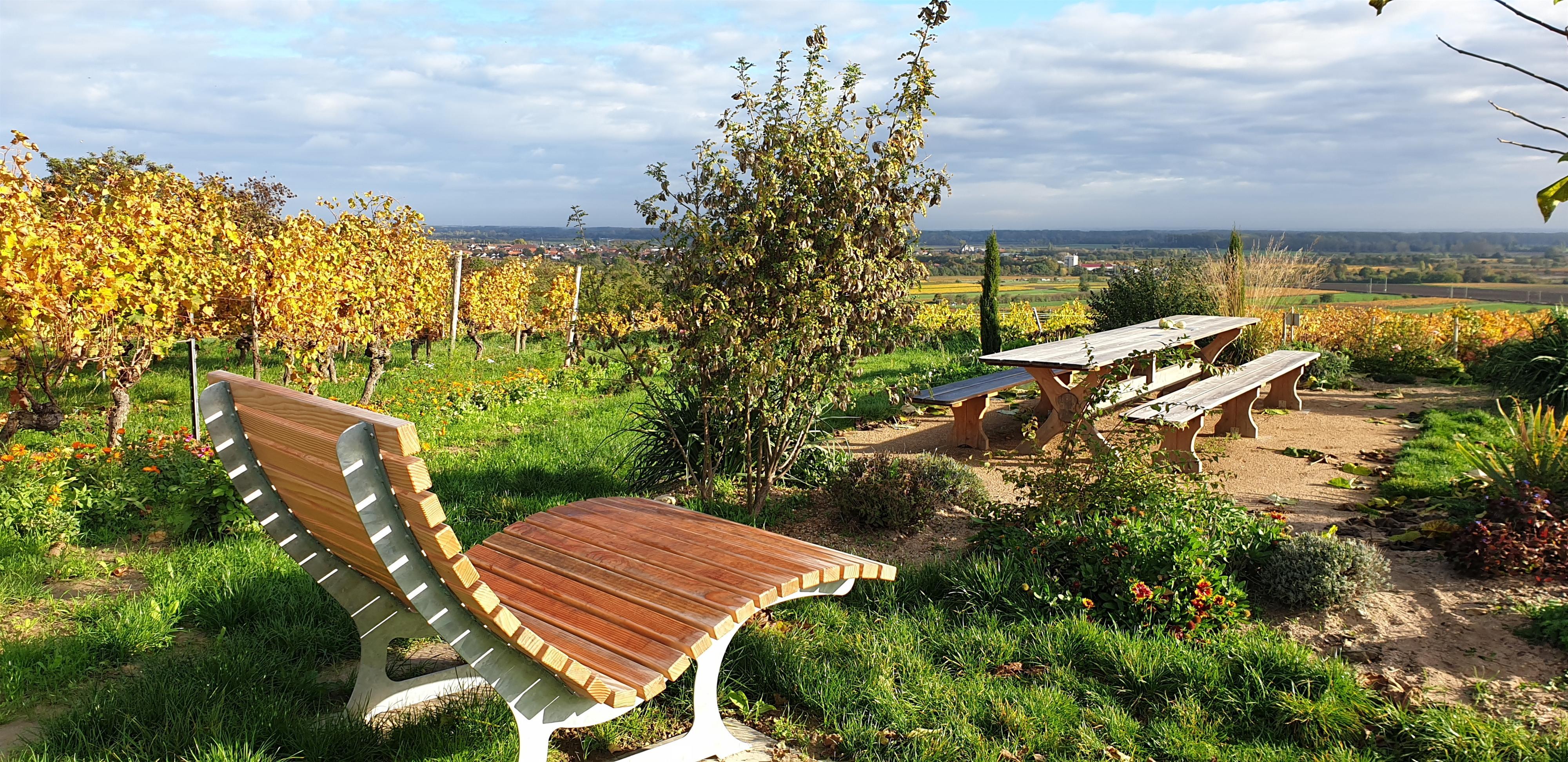 Genießen Sie einen herrlichen Blick in die Rheinebene und entdecken die Silhouetten der Katharinenkirche Oppenheim, des Wormser Doms und der Heidentürme in Guntersblum.