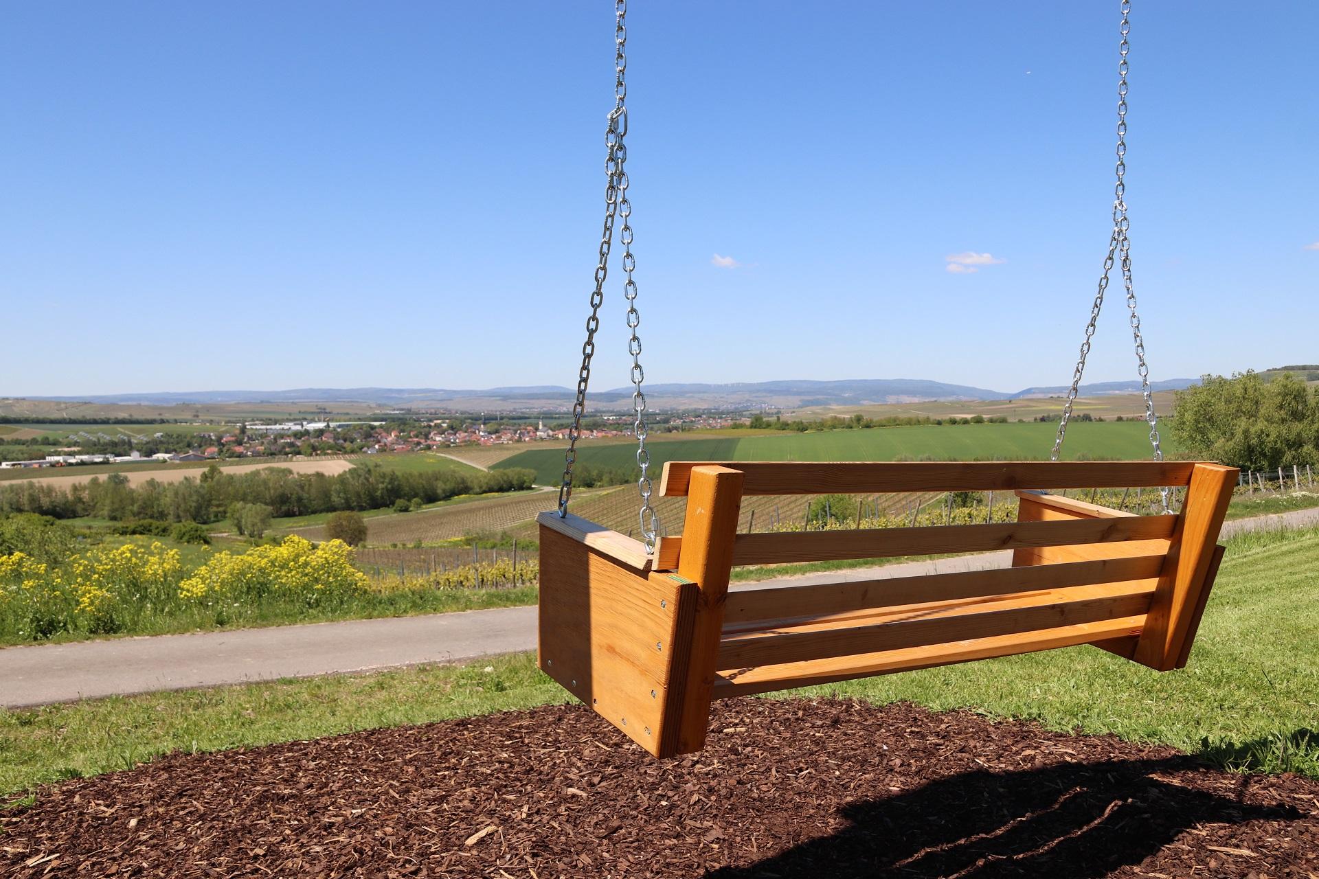 Mit den Wingertsschaukeln und den Tischen des Weines hat der Verein Rheinhessische Toscana e.V. die Standorte in der Verbandsgemeinde mit besonders schönem Ausblick inmitten der Weinberge bzw. die touristisch wertvollen Routen markiert. So werden den Wein- und Wanderfreunden die Schönheit der rheinhessischen Hügellandschaft näher gebracht.