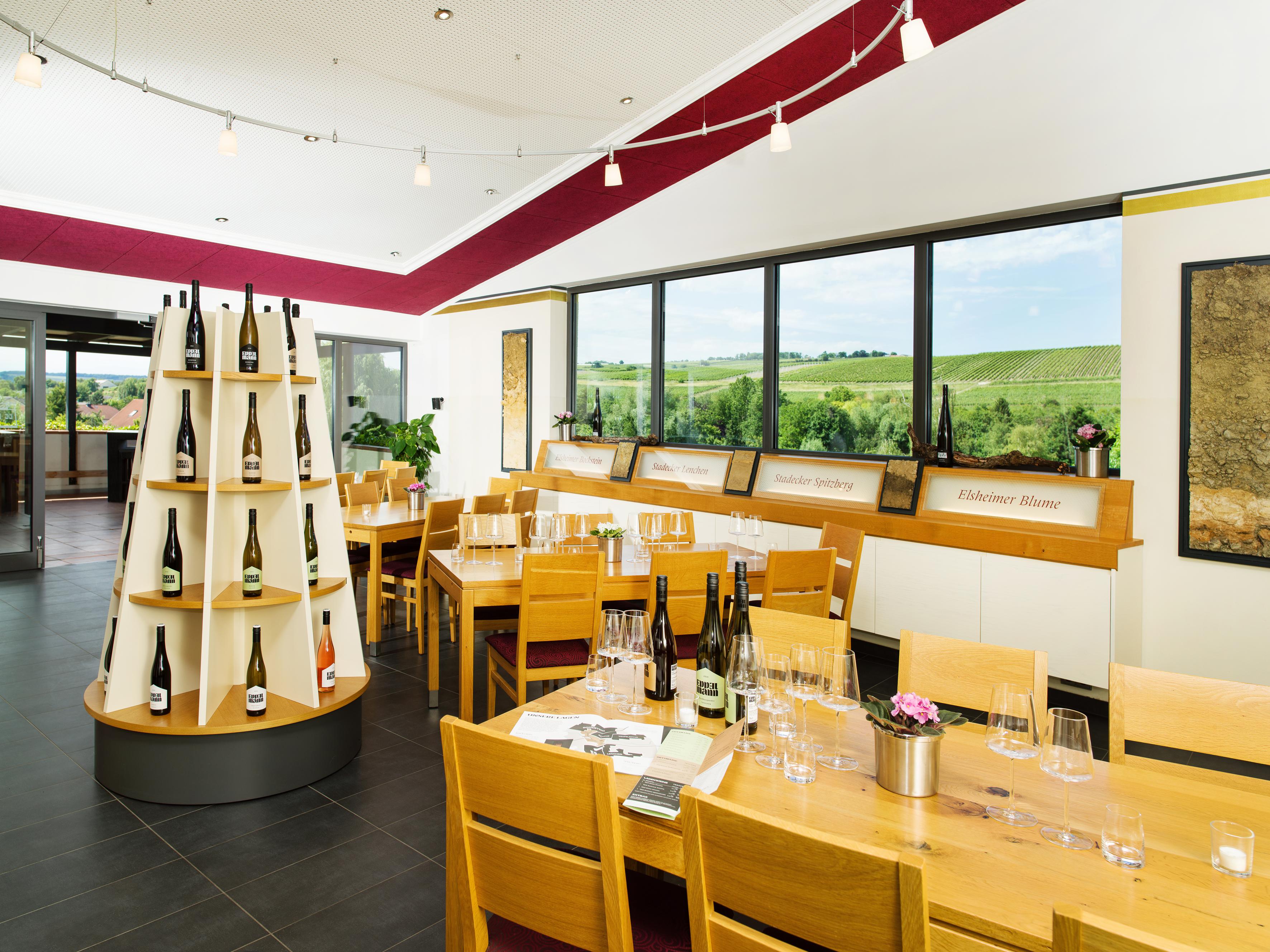Für Eure private oder Firmenveranstaltung vermieten wir unsere Vinothek exklusiv an Euch. Hier im 1. Stock habt Ihr einen phantastischen Blick über unsere Weinberge und schaut direkt auf die bekannte Weinlage „Elsheimer Blume“. Wir starten gerne mit einem Sektempfang auf unserer überdachten Terrasse mit gutseigenen Winzersekten und Traubensecco. Anschließend finden zu Eurer Veranstaltung bis zu 45 Personen in der Vinothek Platz.