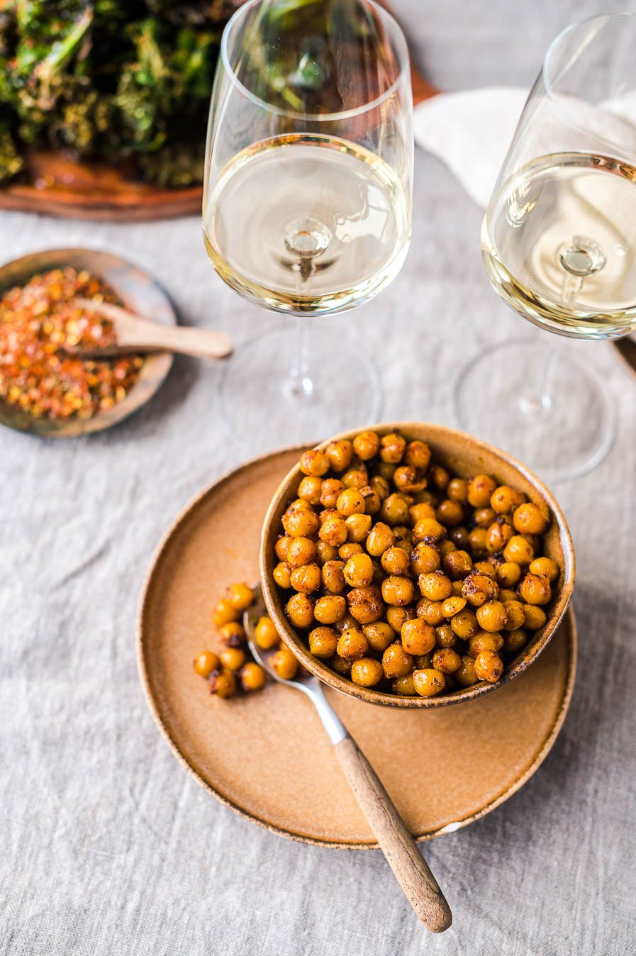 Die gerösteten Kichererbsen, unser zweiter Snack, kommen ebenfalls in den Backofen. Die Zubereitung dieser beiden Rezepte ist also sehr einfach und geht schnell von der Hand.