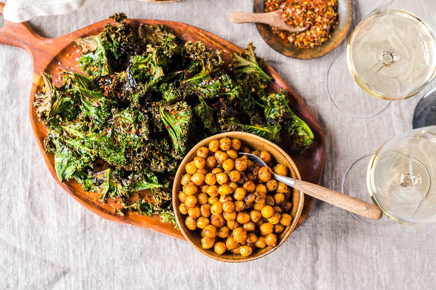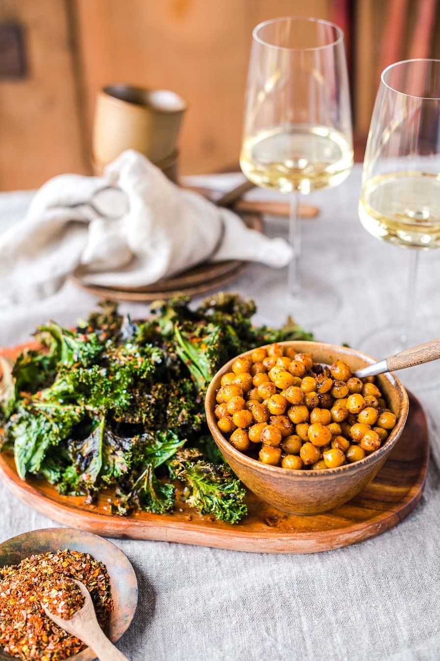 Sollten Sie Gäste erwarten, können diese beiden gesunden Snacks auch wunderbar am Vortag vorbereitet werden. Die Kichererbsen schmecken am besten lauwarm, die Grünkohl-Chips können einfach kalt genossen werden.