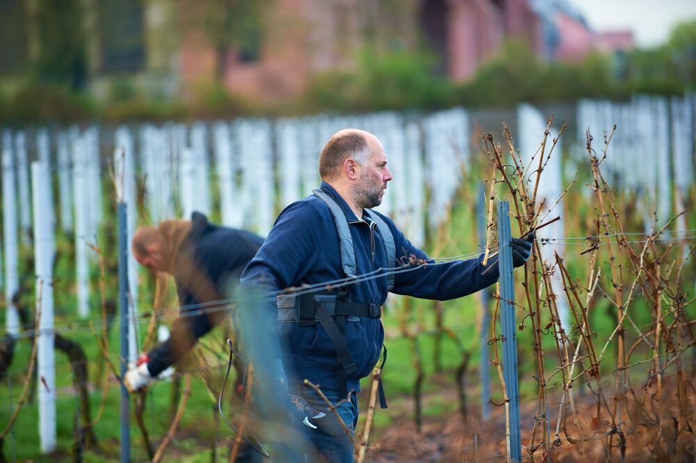 Vor einigen Jahren wurde mit dem Rebschnitt erst nach den Feiertagen im neuen Jahr begonnen. Da die Betriebe immer größer werden beginnt diese Tätigkeit direkt nach dem Blattfall oft schon im November. Nach wie vor ist der Rebschnitt in der traditionellen Bogenerziehung noch die aufwändigste Handarbeit im Weinberg und stellt mehr als ein Drittel der Gesamthandarbeitszeit dar. So müssen die Wintermonate von Dezember bis März komplett genutzt werden.