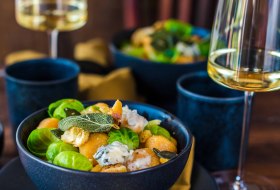 - Das Pflanzenfett in einem Topf erhitzen und die Rosenkohlblätter darin für 160 Grad für 1-2 Minuten frittieren. Auf einem Küchenkrepp abtropfen lassen und zu den Gnocchi servieren.