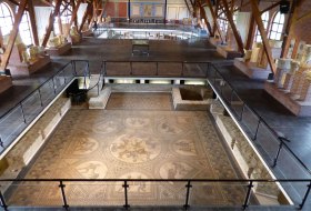 Die Aula regia, die Thronhalle der Ingelheimer Kaiserpfalz, wurde Ende des 8. Jahrhunderts errichtet und gehört damit zum Gründungsbau unter Karl dem Großen (747/48−814). Die Thronhalle war das wichtigste öffentliche Bauwerk und diente als repräsentativer Versammlungsort. Dies zeigt sich auch anhand ihrer hochwertigen Bauausstattung, deren Überreste bei archäologischen Ausgrabungen gefunden wurden. Teile des von der Antike inspirierten Bauschmucks, darunter Fragmente der Wandmalereien und des…