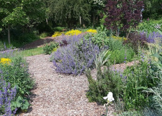 Der Nachtigallenhof in Wallertheim ist vor allem ein großer Staudengarten (18.000 Quadratmeter) mit standortgerechten Pflanzungen, die gut mit dem sommertrockenen Klima zurechtkommen. Obstwiesen mit artgerechter Geflügelhaltung und ein Nutzgarten vervollständigen das Bild.