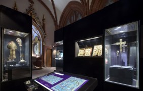 Das Bischöfliche Dom- und Diözesanmuseum mit über 3000 qm Ausstellungsfläche ist das zweitgrößte seiner Art in Deutschland. Einzigartig ist die Abfolge früh-, hoch- u. spätmittelalterlicher Räume, die Kunstwerke aus der Zeit von 500 bis 1500 zeigen. Das Erdgeschoss dient der Präsentation von Sonderausstellungen. Im Untergeschoss des Museums befinden sich die früh- u. hochmittelalterlichen Gewölbehallen mit Zeugnissen der römischen Mainzer Geschichte, der Romanik und Gotik. Im Obergeschoß des spätgotischen Kreuzganges werden auf 800 qm sechzig Meisterwerke aus Spätmittelalter und Neuzeit gezeigt. Zum Dommuseum gehören auch die Nikolauskapelle mit ihrer Sakristei, die der Präsentation des Mainzer Domschatzes dient.