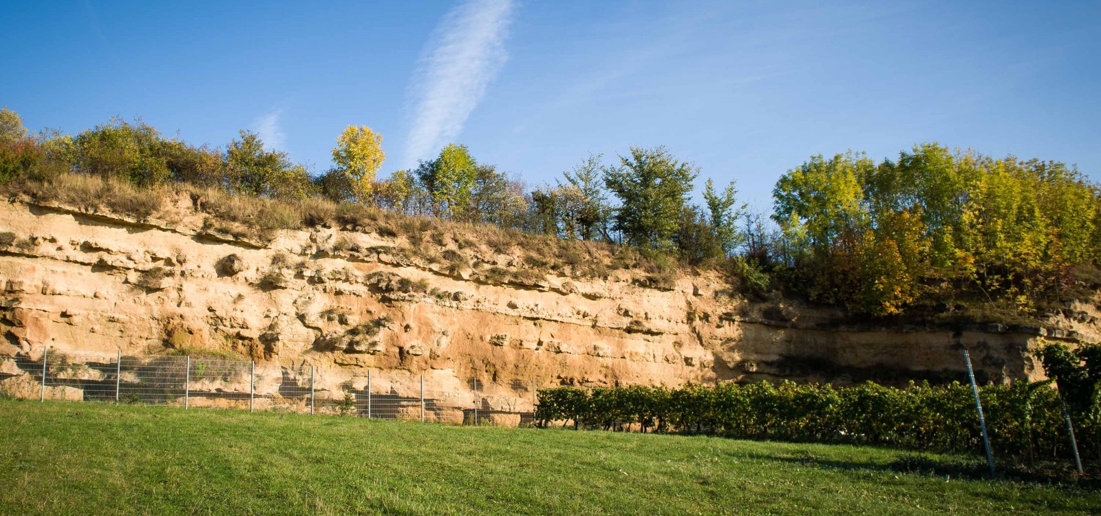 Ein besonderer Weinberg in einer besonderen Lage. Der Majestäten Weinberg wird vor dem grandiosen geologischen Naturdenkmal der Weinheimer Trift ins Rampenlicht gerückt und es entsteht eine innige Verbindung zwischen Weinbau und Geologie. Die Weinheimer Trift lässt den Weinberg gerade bei Sonnenuntergang in besonderem Glanz erstrahlen und versprüht einen unwiderstehlichen Charme.