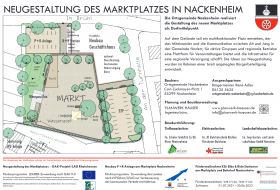 Ziel des Vorhabens ist die Neugestaltung und Erweiterung des zentral gelegenen Marktplatzes in Nackenheim. Auf dem Gelände soll ein multifunktionaler Platz entstehen, der das Miteinander und die Kommunikation auch zwischen Alt und Jung in der Gemeinde fördert, für aktive Gruppen und regionale Betriebe eine Plattform für Veranstaltungen bietet und die Infrastruktur für eine regionale Versorgung schafft. Der in der Nähe des Bahnhofes gelegene Platz soll zukünftig für verschiedene Aktivitäten, kulturelle Veranstaltungen sowie als Verkaufsstelle für regionale Produkte genutzt werden. In unmittelbarer Nähe werden zusätzliche Angebote wie eine Bike & Ride Anlage inkl. Bike Service Station, ein Park & Ride Platz sowie eine barrierefreie Bushaltestelle entstehen.