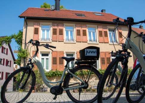 Wir haben uns mit Angelika Friedrich in der Wörrstädter Touristinformation verabredet. Hier werden wir mit E-Bikes ausgestattet, die uns entspannt durch das rheinhessische Hügelland bringen werden. Jedes unserer Fahrräder trägt den Namen einer anderen Rebsorte und es sind Details wie dieses, die diesen Tag zu einem echt rheinhessischen Erlebnis machen – noch bevor wir auch nur einen einzigen Meter gefahren sind.