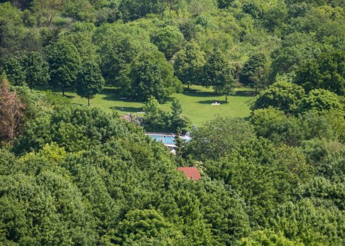 Mitten im Wald können wir das Neubornbad ausmachen. Angelika Friedrich schwärmt von dem zwar kühlen, aber sehr sauberen Quellwasser, das dieses Bad speist.