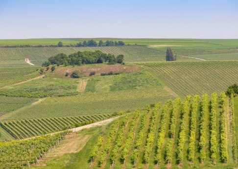Bestens gelaunt schwingen wir uns wieder auf den Sattel und treten die Weiterfahrt an. Der nächste Abschnitt führt mitten durch Getreidefelder, vorbei an Obstplantagen und schließlich erneut hinauf in die Weinberge.