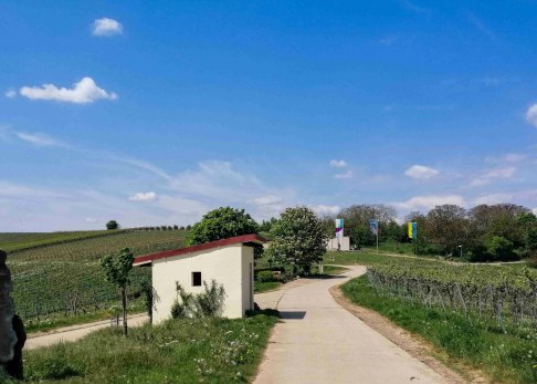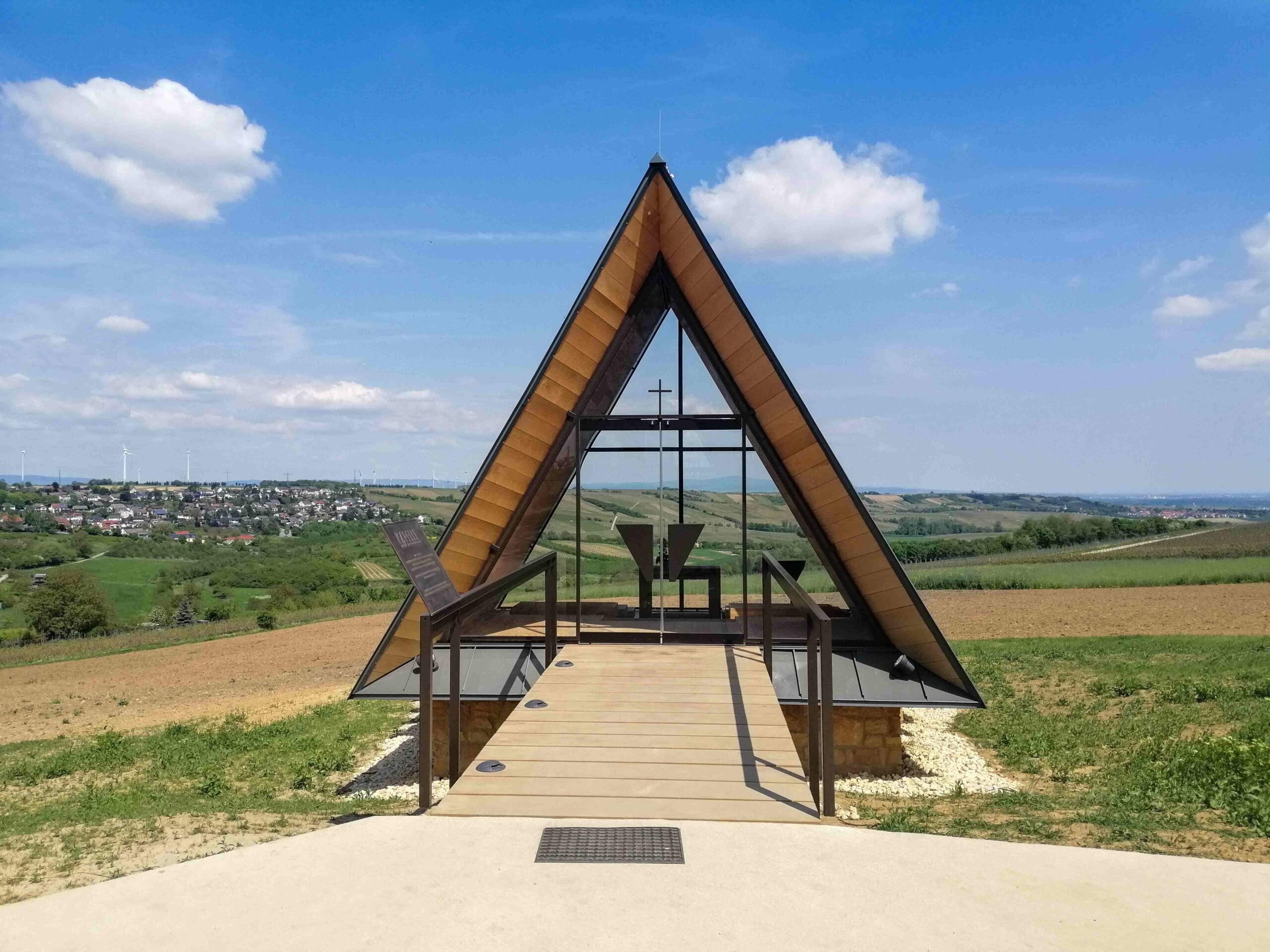 Mein Blick wandert weiter zu einer außergewöhnlichen Kapelle in den Weinbergen. Hier können Wanderer und Spaziergänger eine besinnliche Pause einlegen und zur Ruhe kommen.