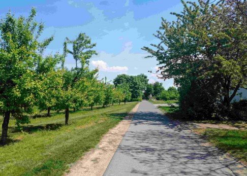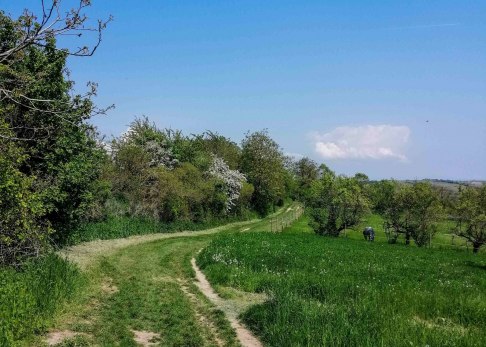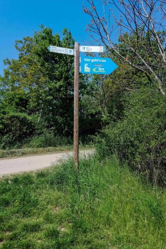 Nach Hause gehen sollte man nach dem Besuch von WeinPavillon und Kapelle aber noch nicht; zu schön ist es einfach hier, inmitten der Natur; überall grünt und blüht es. Melodisches Vogelgezwitscher wechselt sich mit dem heiseren Gekrächze einiger Raben ab. Pferde schnauben und wiehern auf einer eingezäunten Wiese. Der Flieder trägt seinen herrlichen Duft direkt zu den Wanderern.
