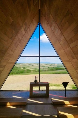 Der Besuch der Kapelle stellt ein angenehmes Kontrastprogramm zum trubeligen WeinPavillon dar. Das Bauwerk verströmt eine angenehme Stille: Besucher können auf den hölzernen Bänken Platz nehmen, beten, innehalten oder meditieren und sich so eine wohlverdiente Auszeit vom Alltag gönnen.