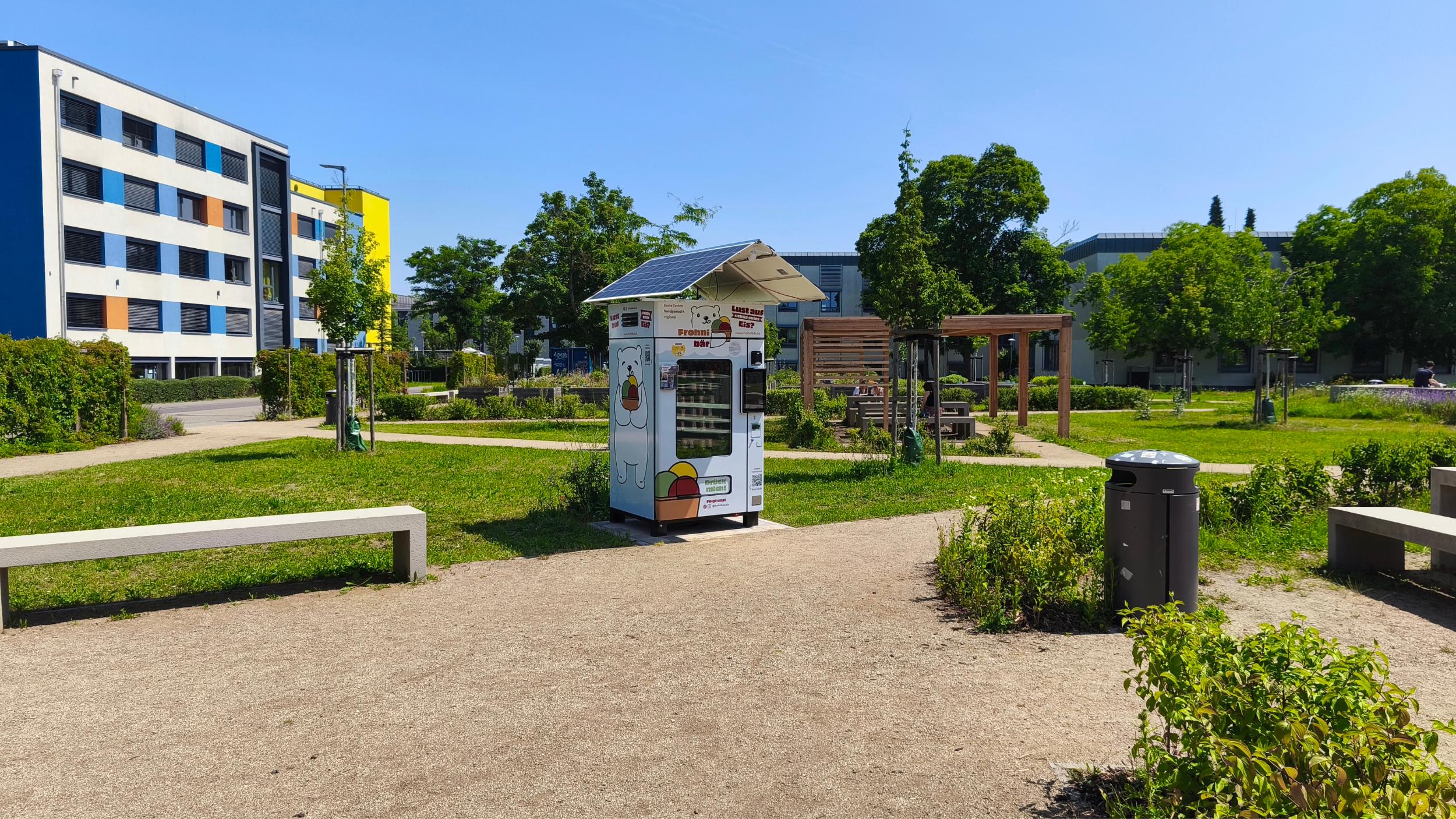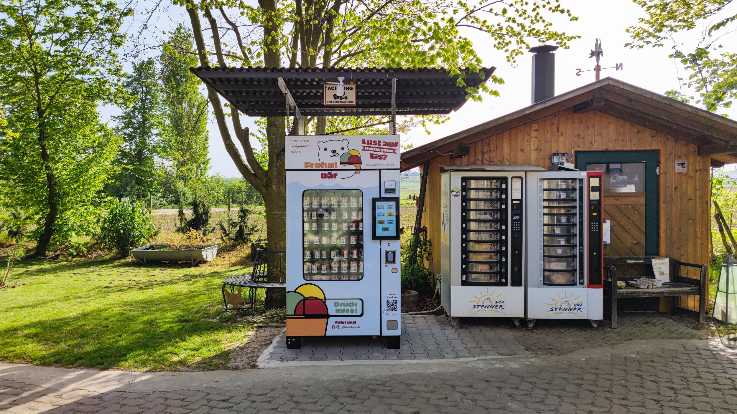 De automaat staat bij de Hofladen Stenner en is gevuld met het lekkere ijs van de Mainzer fabrikant N’Eis en biedt 2 bekerformaten met heerlijke ijssmaken aan. In de deksel van de kleinere beker (130ml) is een praktische lepel verstopt voor directe consumptie. Een zitgelegenheid nodigt uit tot directe consumptie.