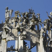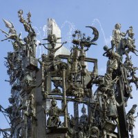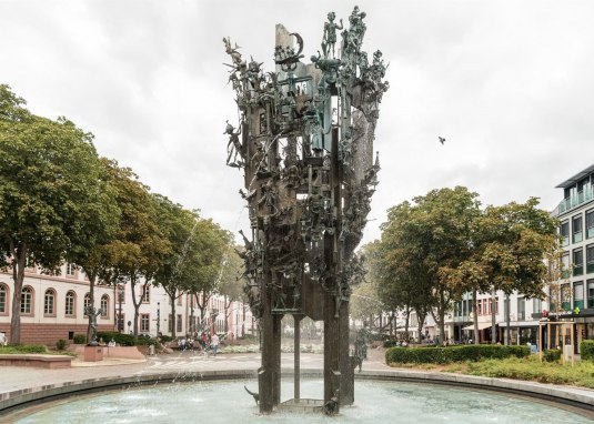 Temidden van het door Gräf gecreëerde fonteinbekken van rode zandsteen rijst een Bronzen toren van bijna negen meter hoog op, die bevolkt wordt door meer dan 200 figuren. Wat het oog hier kan ontdekken, is mysterieus, grotesk en tegelijkertijd vertrouwd. Vader Rijn, de monnik en de man met het plank voor zijn hoofd, de kat, Till Eulenspiegel en de stadsgodin Mogontia, de zakkenwasser of de paragrafenrijder: dit zijn allemaal voorbeelden van de diversiteit van de fantastische motieven die de carnavalsfontein bevolken. Ze brengen niet alleen de bijzondere aard van de Mainz Vastenavond over, maar ook de geest van de traditionele stad Mainz op onnavolgbare wijze tot uitdrukking.
