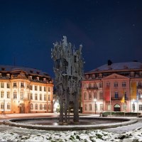 De carnavalsfontein (Vastenavondfontein) is bijna negen meter hoog. Hij werd in 1967 voltooid en illustreert meer dan 200 bronzen figuren, waaronder Till Eulenspiegel, Vader Rijn en Hans Wurst, die de geest en de mythe van de Mainz Vastenavond verbeelden. Natuurlijk is er ook het beroemde "Weck, Worscht en Woi", dat door de Mainzers wordt vereerd. De fontein bevindt zich op het Schillerplatz. Vanaf het balkon van het Osteiner Hof, dat uitkijkt op het plein, verzamelen de grootheden van de Mainz Vastenavond zich op 11 november om het carnavalsseizoen officieel te openen.