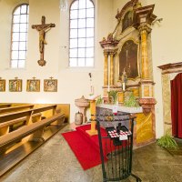 De Alsheimse kerk van Maria Hemelvaart in haar huidige vorm werd in 1742 gebouwd als een driezijdig gesloten zaalgebouw met een (ouder) stervormig gewelfd koor.