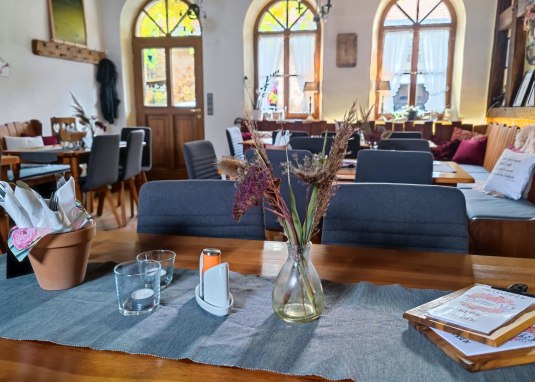 In een gezellige sfeer bieden wij tot 40 gasten verschillende seizoensgerechten aan. Van Spundekäs en salade tot Flammkuchen & soepen, alles wordt bij ons vers en zelf bereid. Uiteraard schenken we al onze wijnen