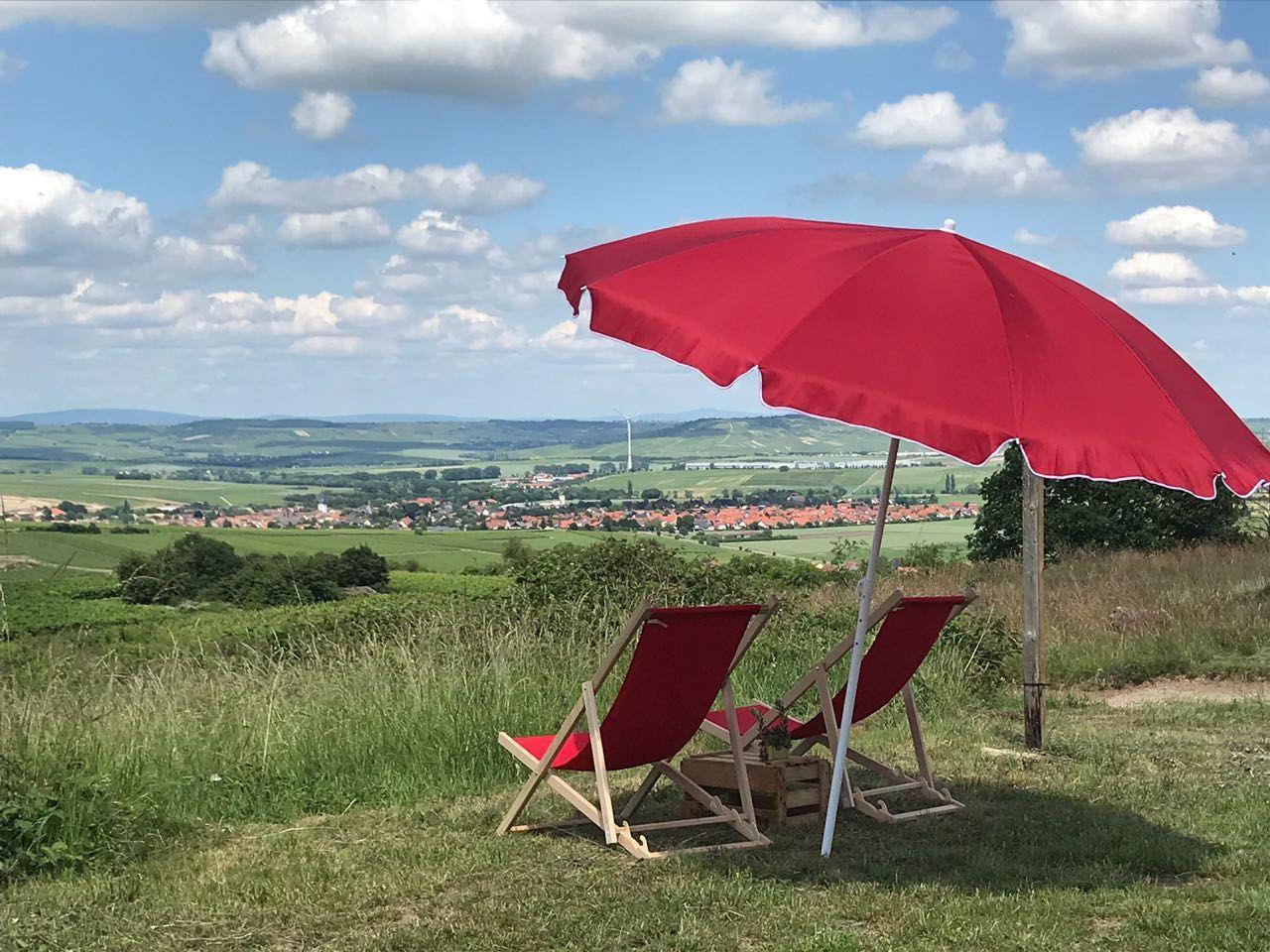Geniet van een gegarandeerd sensationeel uitzicht aan de "Tafel van Wijn" op het Büchsenstück in Siefersheim, met koffie en huisgebakken gebak, hartige hapjes en lekkere wijnen!