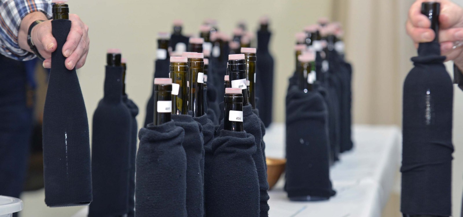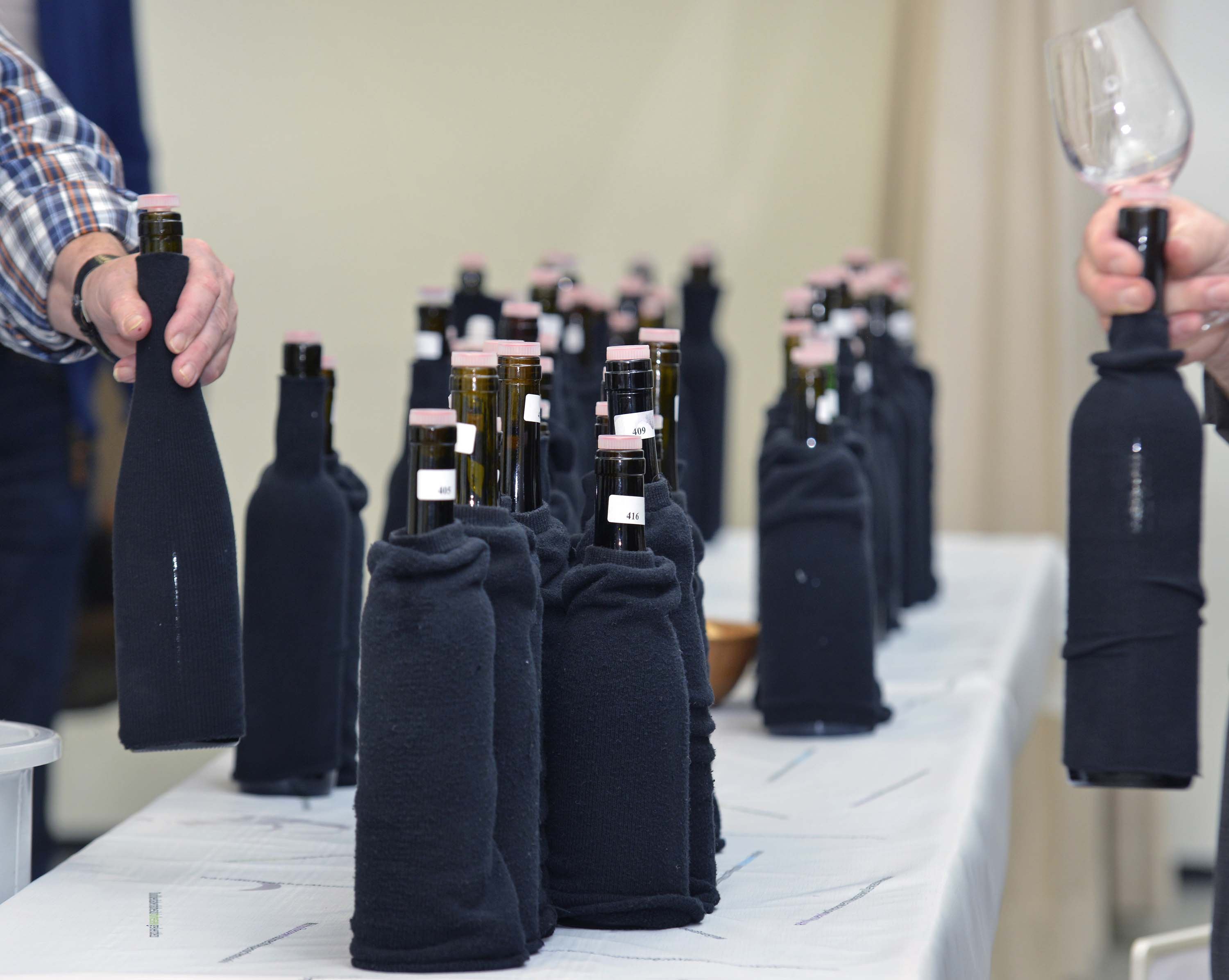 Om een wijn objectief te kunnen beoordelen, probeert men de wijn "blind". Dit betekent dat de flessen zijn ingepakt of anderszins onherkenbaar gemaakt, zodat u niet kunt zien om welke wijnen het gaat.