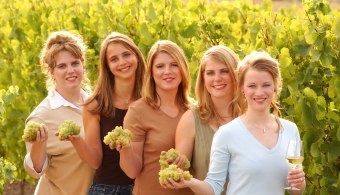 Rheinhessische Weinkönigin 2006 - 2007 met haar wijnprinsessen Christina, Kathrin, Mirjam en Nicole